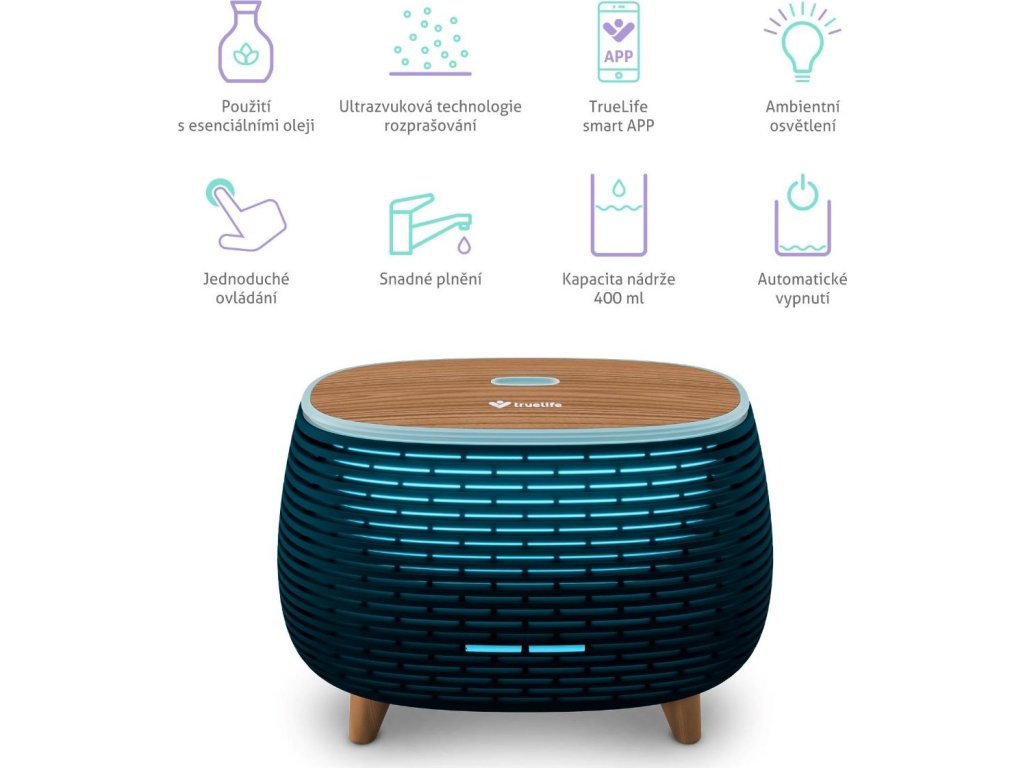 Difuzér lze propojit přes Wi-Fi s mobilní aplikací TrueLife Smart a jejím prostřednictvím ovládat.