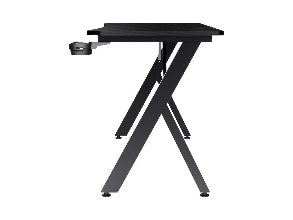 Odolný a robustní herní stůl pro optimální herní zábavuStůl o rozměrech 120 × 60 × 76 cm s dostatkem místa pro monitor, klávesnici, myš a další prvky. Díky přiloženému držáku na nápoje a háčku na náhlavní soupravu máte vše potřebné na dosah. Uschovejte kabely mimo dohled a dosah díky praktickým otvorům pro vedení kabelů. Odolné kovové nohy se šroubovacími vyrovnávacími patkami zajišťují stabilní a pevné usazení. Pro optimální trasování je nutná podložka pod myš