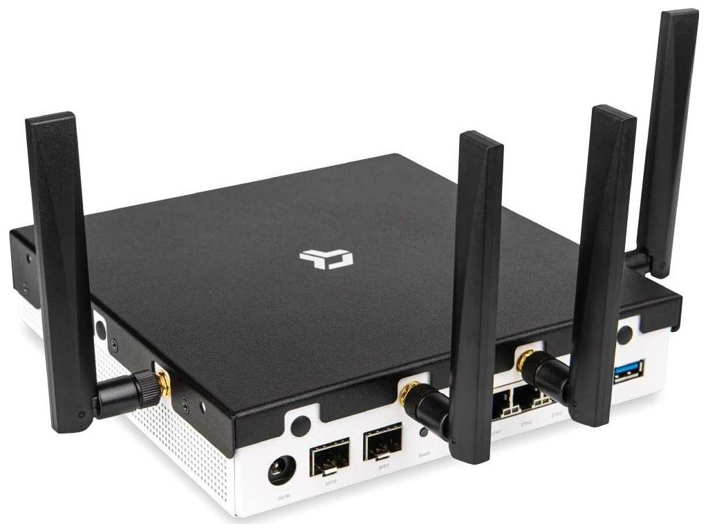Vysokovýkonný 10 Gbps, bezpěčnostní, open-source router s Wi-Fi 7, displejem a velkými možnostmi přizpůsobení. Jako WAN port slouží (1) 10/100/1000/2500/10000 Mbps SFP+ port nebo (1) 10/100/1000/2500 Mbps RJ45 port, v místní síti lze využít (3) 10/100/1000/2500 Mbps RJ45 porty a (1) 10/100/1000/2500/10000 Mbps SFP+ port