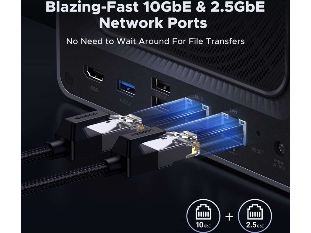 Zapomeňte na pomalé přenosy souborů. Díky dvěma síťovým portům (10GbE a 2,5GbE) dosahuje NASync DXP4800 Plus rychlosti přenosu dat až neuvěřitelných 1250 MB/s.