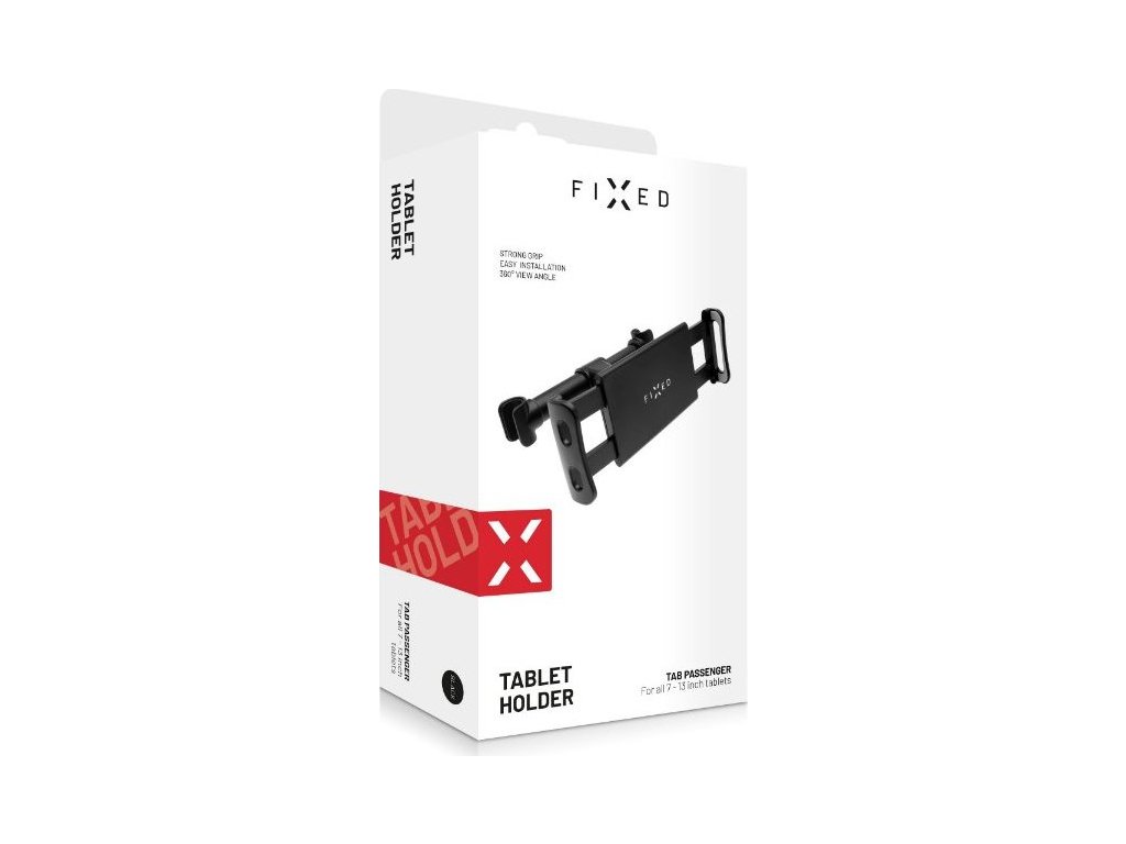 Univerzální držák pro tablet do auta, se kterým se stanou dlouhé cesty pro spolujezdce na zadních sedadlech příjemnějšími. Instalace držáku je rychlá a snadná, stačí upevnit rozevírací základnu mezi tyčky, které drží opěrku hlavy a je připraven k použití. Vložený tablet drží spolehlivě, je chráněn pogumovanými okraji kleští a pomocí otočného kloubu ho nastavíte do ideálního úhlu. Spolu s vaším tabletem udělá držák FIXED Tab Passenger ze zadních sedaček malé kino a dětem nebo jiným cestujícím na zadních sedačkách uteče cesta rychleji.Vlastnosti: