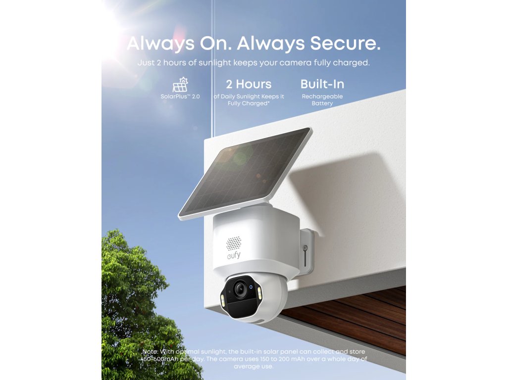 Napájení SolarPlus 2.0: Stačí 2 hodiny přímého slunečního světla denně k zajištění nepřetržitého provozu bez nutnosti nabíjení.