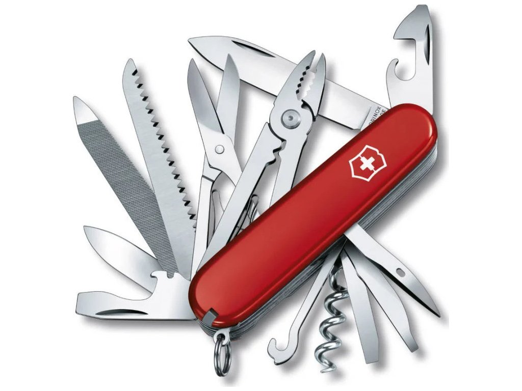 Victorinox HandymanKapesní nůž o velikosti 91 mm s kleštěmi, nůžkami, pilkou na dřevo a pilníkem. Vhodný pro běžné užití, cestování a turistiku.