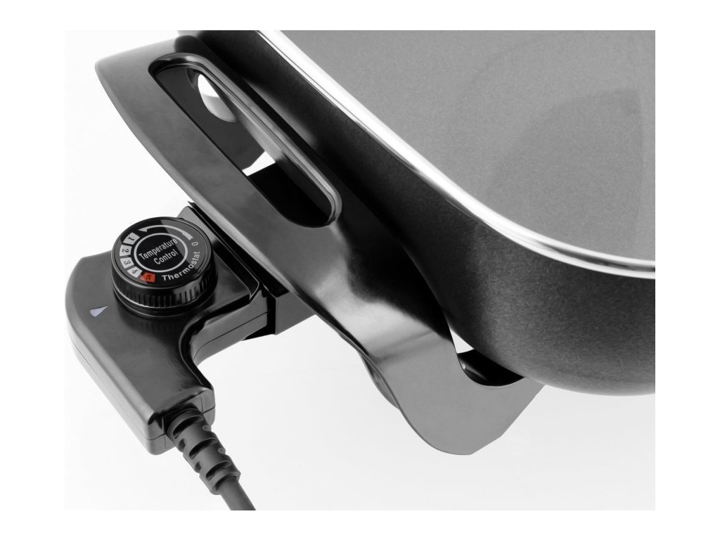 Elektrická víceúčelová pánev pro pohodlnou přípravu většího množství potravin. Pánev 6 v 1 dokáže nahradit několik spotřebičů - smaží, dusí, vaří, zapéká, ohřívá a griluje, široké využití nejen v domácnosti, na chalupě, nebo na dovolené. Zdravé a chutné pokrmy rychle, efektivně a kdekoli.Speciální nepřilnavý povrch pro zdravé vaření bez tuku a oleje, rovnoměrné rozložení tepla po celé ploše pánve, odnímatelný regulátor teploty s napájecím přívodem, světelná indikace provozu, nastavitelný thermostat 1-5 stupeň (0 – 240 °C). Skleněná poklice s ventilačním otvorem pro únik páry a odizolovaným madlem, masivní, tepelně odolné rukojeti, gumové nožičky pro dokonalou stabilitu, velice snadná údržba a čištění.