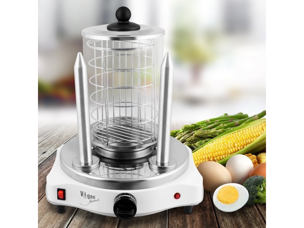 Hotdogovač pro rychlé domácí občerstvení, oblíbené párky v rohlíku v klidu domova rychle a levně, vhodný i pro vaření vajec, kukuřice a jiné zeleniny jako např. brokolice, chřestu apod.,kvalitní celonerezové zpracování, tělo v bílém provedení, nádoba ze speciálního tvrzeného varného skla pro bezpečné používání a dlouhou životnost (rozměry nádoby - výška 21 cm, průměr 16 cm),