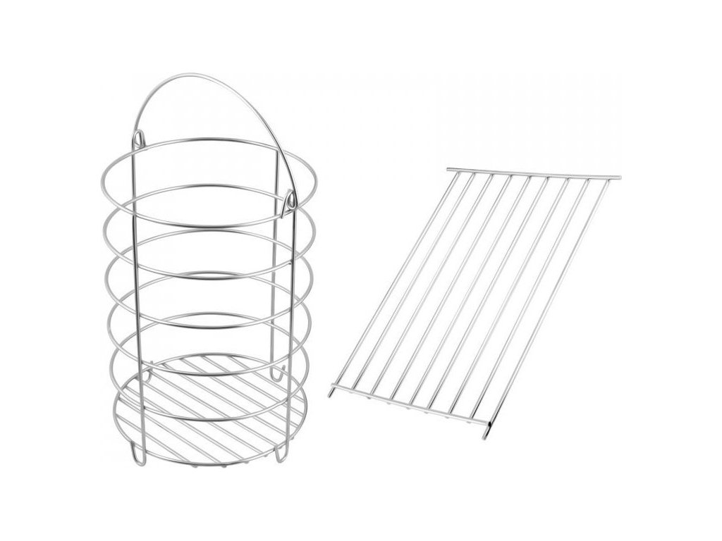 nerezové víko s madlem a otvorem pro odvod páry, nerezový koš až pro 20 ks standardních párků, nerezová miska na vodu pro vytvoření dostatečného množství páry pro ohřev,