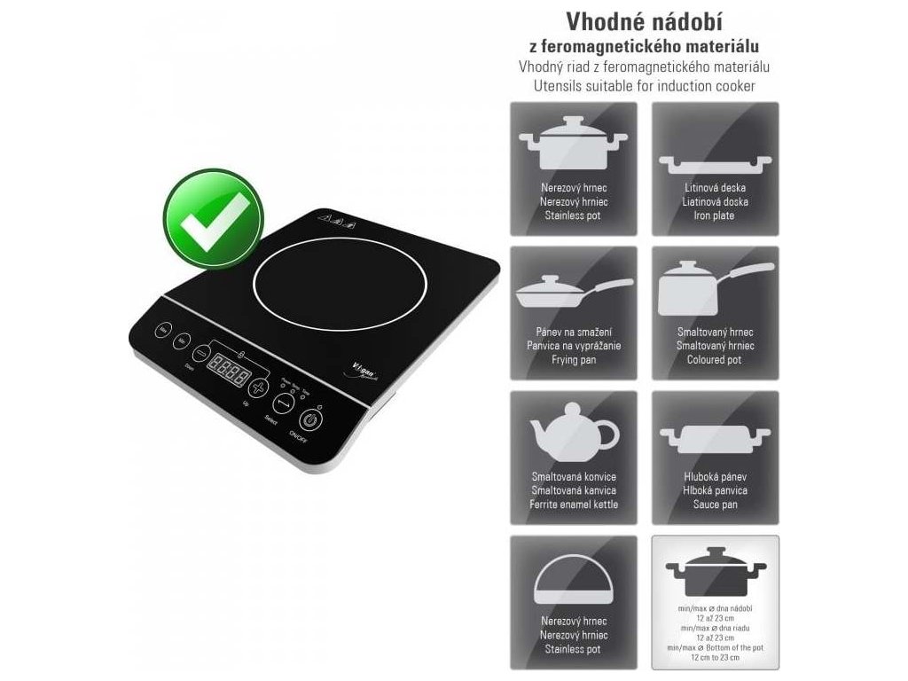 Přineste do své kuchyně synonymum efektivity a stylu s Vigan Mammoth IV1Z, jednoplotýnkovým indukčním vařičem, který představuje dokonalou kombinaci vysokého výkonu, inovativního designu a kompaktního provedení. S výkonem 2000W a vysoce odolnou sklokeramickou povrchovou úpravou tento vařič nabízí rychlý a rovnoměrný ohřev, což zajišťuje, že vaše pokrmy budou připraveny efektivně a s minimální spotřebou energie.Design Vigan Mammoth IV1Z je vytvořen s důrazem na jednoduchost a elegance, čímž se stává ideálním doplňkem pro moderní kuchyně. Jeho hladký sklokeramický povrch nejen vypadá esteticky přitažlivě, ale také usnadňuje čištění – stačí jednoduše otřít vlhkým hadříkem, aniž byste museli bojovat s připečenými zbytky jídla.