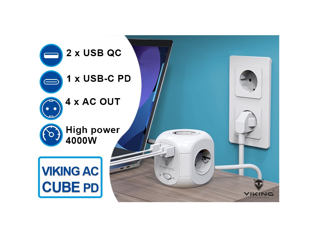 Síťový adaptér Viking AC Cube PDPředstavujeme AC Cube PD: Více než jen krychlová roztrojka!