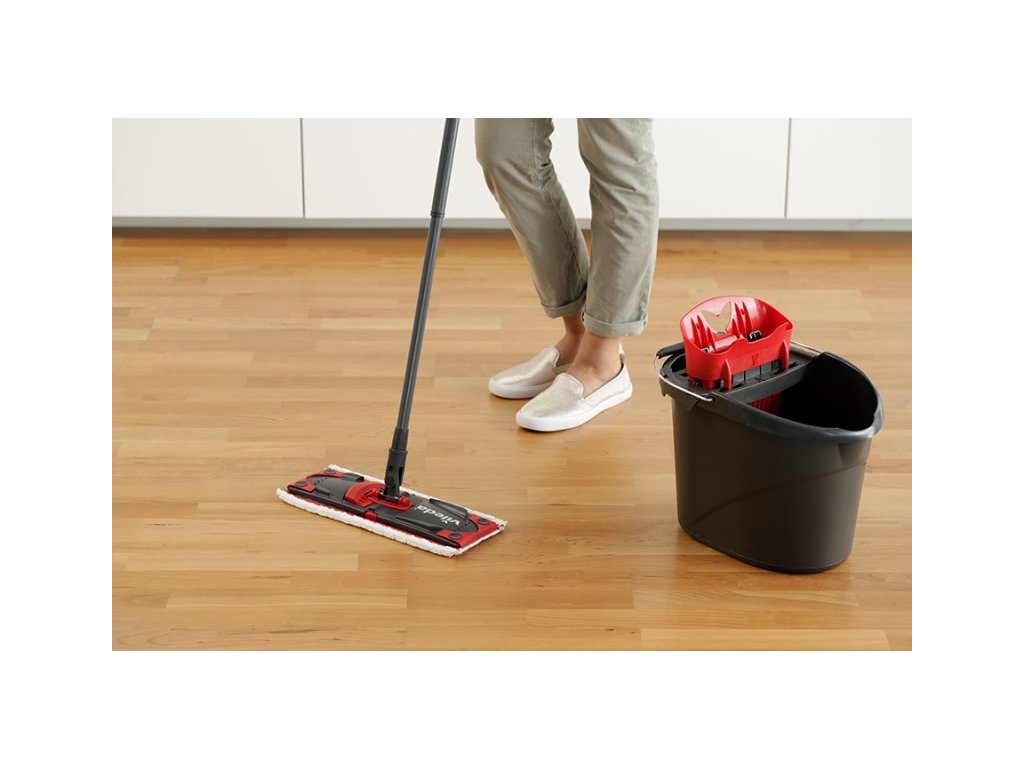 Plochý mop Vileda 160931 Ultramax XL je revoluční nástroj pro úklid, který kombinuje inovativní design s vysoce účinnými funkcemi, aby usnadnil a zefektivnil úklid vašich podlah. Tento mop je vybaven extra širokou hlavicí o šířce 42 cm, což umožňuje rychlejší a efektivnější úklid velkých ploch. Speciální mikrovlákna na mopu nejenže skvěle absorbují vodu, ale také odstraňují i ty nejmenší nečistoty a bakterie, zanechávající podlahu zářivě čistou.Unikátní rotační mechanismus ve vědru umožňuje snadné ždímání mopu bez nutnosti namáčení rukou, což zajišťuje pohodlné a hygienické používání. Ergonomická rukojeť a flexibilní kloub hlavice mopu umožňují snadné dosažení i těžko přístupných míst, jako jsou rohy a prostory pod nábytkem.