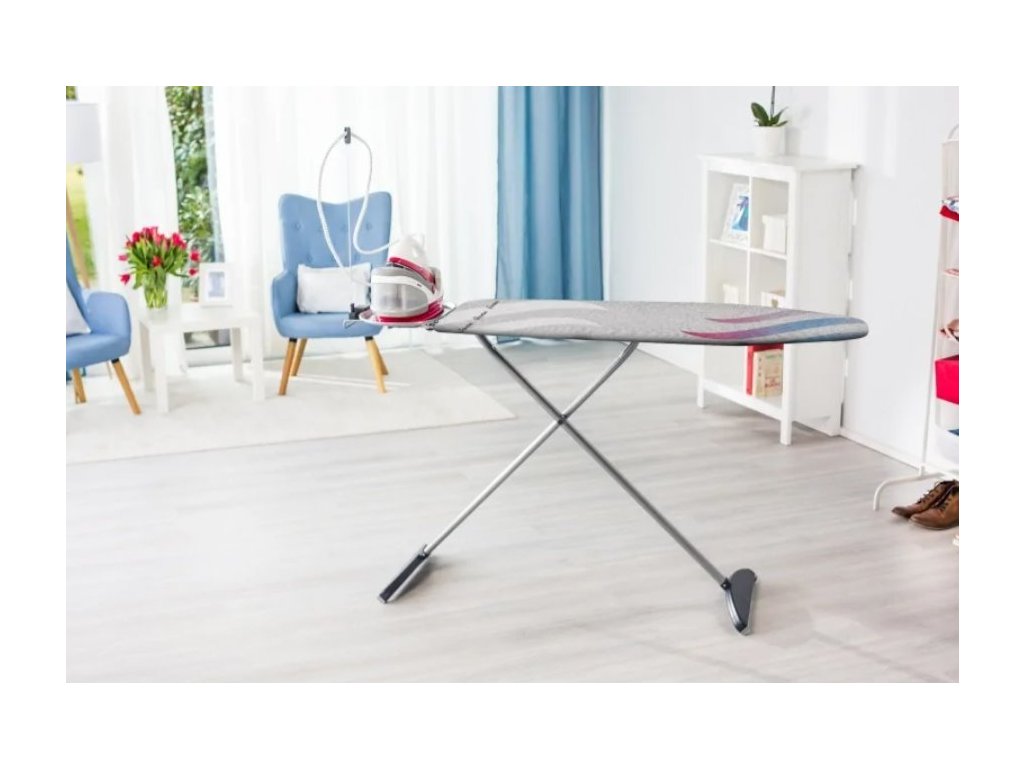 Díky skládacím nohám lze prkno sklopit naplocho, takže se snadno vejde do skříně. Hmotnost pouhých 6,7 kg také umožňuje snadnou manipulaci. Vyberte si naše žehlicí prkno Vileda Total Reflect Plus a jsme si jisti, že budete spokojeni se všemi jeho přednostmi, jako je velká žehlicí plocha, která nabízí extra pohodlí a je vhodná pro veškeré prádlo. Další výhody jsou: velikost odkládací plochy, bezpečnostní zámek, který brání náhodnému složení, držák kabelu a integrovaná zásuvka. Toto žehlicí prkno je ideální pro všechny vaše potřeby během žehlení. Zbavte se všech přehybů, snadno vyžehlete i extra silné látky pomocí odrazu tepla a páry, snadno žehlete i ty těžko vyžehlitelné oblasti, jako jsou rukávy a límce. Mějte ze žehlení větší radost než kdykoli předtím díky tomuto novému a inovativnímu žehlicímu prknu!