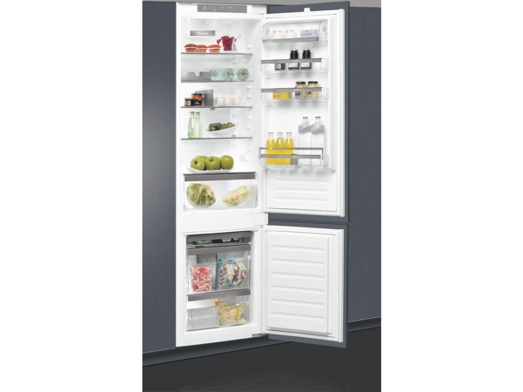 Vestavná kombinovaná chladnička Whirlpool ART 9811 SF2 s roční spotřebou energie pouhých 246 kWh patří do energetické třídy A++ a klimatické třídy T, SN. Chladnička o celkovém objemu 306 l nabízí chladicí prostor o objemu 227 l a mrazicí část s objemem 79 l. Chladnička je vybavena ventilátorem, funkcí SuperCool a automatickým odmrazováním. Mezi další vlastnosti spotřebiče patří senzorová technologie chlazení se 6. smyslem Fresh Control, hlučnost chladničky je pouhých 35 dB a je vybavena také výkonným kompresorem. Změna otevírání dveří je možná, uchycení dekorativních dveří zajišťují kolejničky. Ovládání chladničky je velmi snadné a intuitivní a zajišťují ho elektronická tlačítka. Chladnička má také 5 skleněných poliček, 4 nastavitelné poličky, 1 zásuvku na ovoce a zeleninu a 4 přihrádky ve dveřích, kde se nachází také pojistka lahví.