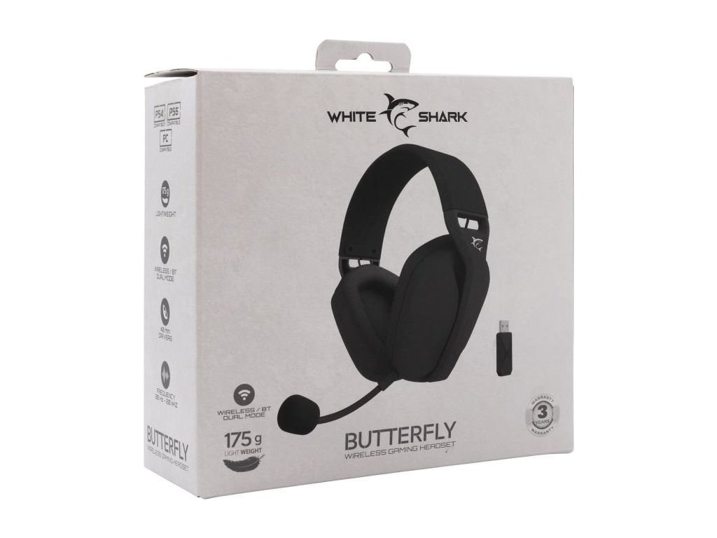 White Shark BUTTERFLY jsou lehká, všestranná herní sluchátka s vynikající kvalitou zvuku a flexibilní konektivitou.Sluchátka BUTTERFLY představují ideální volbu pro hráče, kteří hledají kombinaci lehkosti, komfortu a výkonu.