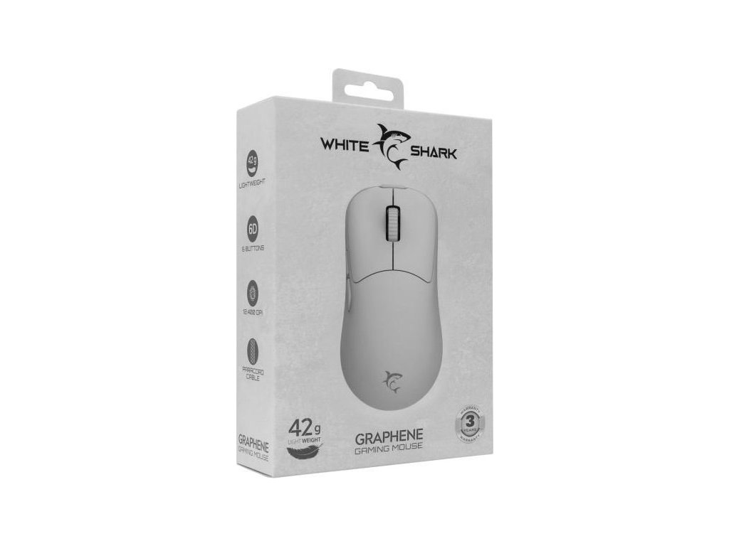 White Shark GRAPHENE, 6D, 12.400 dpi - Herní myš s váhou pouhých 47 gramů, která kombinuje lehkost s excelentním výkonem.Seznamte se s White Shark GRAPHENE — lehkým zázrakem vážícím pouhých 47 g, který slibuje obratnost bez námahy.