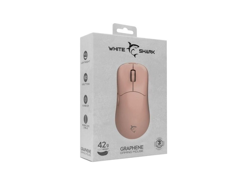 White Shark GRAPHENE, 6D, 12.400 dpi - Herní myš s váhou pouhých 47 gramů, která kombinuje lehkost s excelentním výkonem.Seznamte se s White Shark GRAPHENE — lehkým zázrakem vážícím pouhých 47 g, který slibuje obratnost bez námahy.