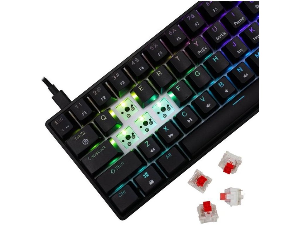 Každá klávesa je individuálně podsvícena RGB LED diodami, které umožňují přizpůsobení barev podle vašich preferencí.