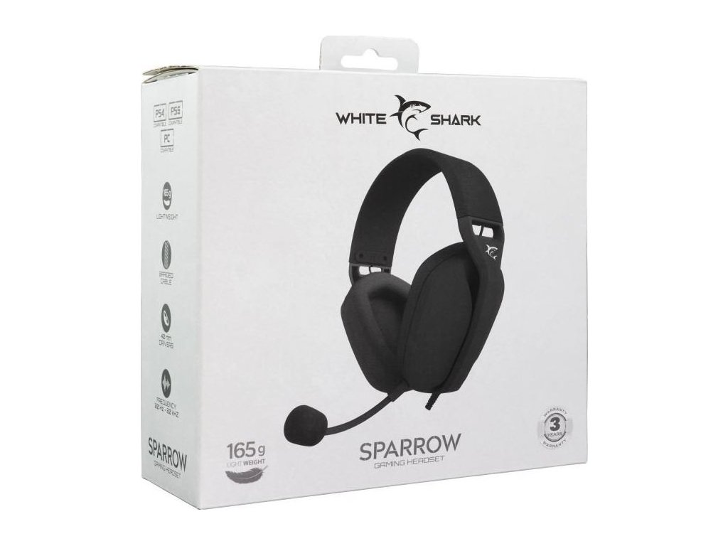 White Shark herní headset SPARROW - Zažijte herní zážitky na nové úrovni s lehkými a pohodlnými sluchátky.Objevte nový způsob hraní s herními stereo sluchátky SPARROW Black. S hmotností pouhých 165 g budete mít pocit, že je ani nenosíte.