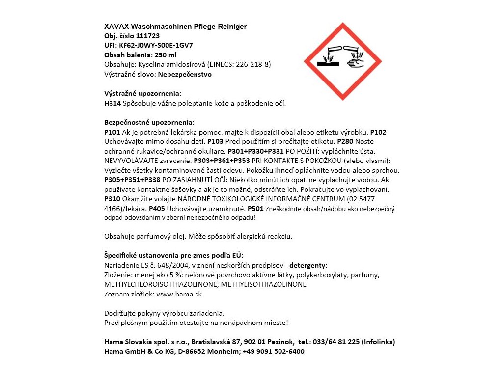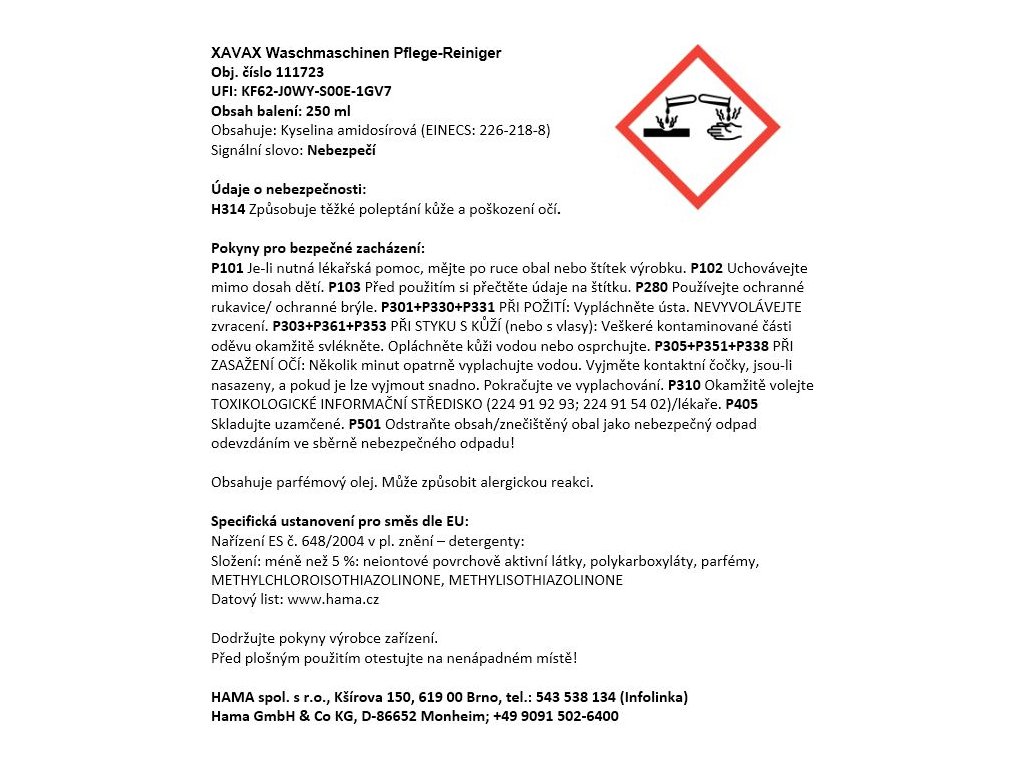 - odstraňuje nečistoty a nepříjemný zápach způsobený zbytky vodního kamene a pracích prostředků- nepříjemný zápach a usazeniny vznikají především kvůli nízké teplotě při praní (prací programy s teplotou nižší než 40°C) a úsporným programem; pravidelné čištění tomu zabraňuje