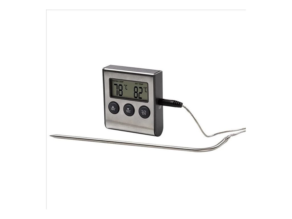- digitální teploměr pro kontrolu vnitřní teploty jídla při vaření, pražení, pečení- senzor z nerezové oceli (16 cm) s kabelem odolným vůči vysokým teplotám (1 m) umožňuje měření teploty uvnitř tepelně upravovaných potravin
