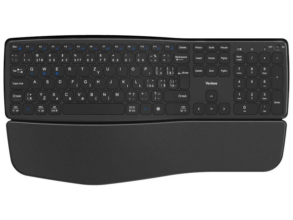 Bezdrátová ergonomická klávesniceDuální připojení 2,4G + Bluetooth