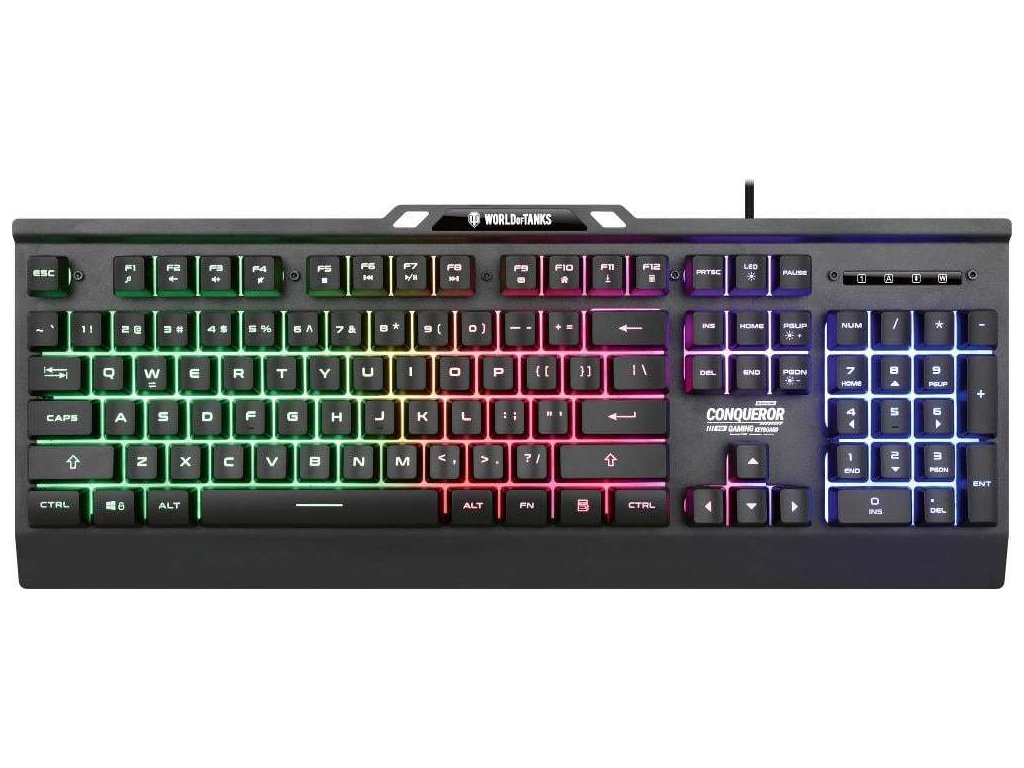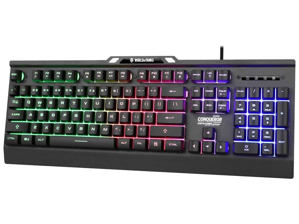 Objevte svůj herní potenciál s klávesnicí CONQUEROR. Díky tichým membránovým spínačům je každý stisk klávesy plynulý a tichý, což vám umožní soustředit se na hru bez rušivých vlivů. Dynamické duhové podsvícení nejen dodává úžasný vizuální dojem, ale také zlepšuje váš herní zážitek díky jasné viditelnosti za jakýchkoliv světelných podmínek. Klávesnice CONQUEROR je navržena tak, aby vydržela intenzivní herní seance i díky své odolné kovové základně. Její robustní design zajišťuje dlouhotrvající výkon, což z ní činí spolehlivou volbu pro hráče, kteří požadují to nejlepší. Nastavitelné naklápěcí nožičky vám umožňují přizpůsobit úhel klávesnice pro optimální pohodlí, čímž snižují únavu při dlouhém hraní. Herní klávesnice CONQUEROR není jen o výkonu, ale také o estetice. Dynamické duhové podsvícení nabízí několik režimů osvětlení a úrovní jasu, což vám umožňuje personalizovat vaše nastavení tak, aby odpovídalo vašemu stylu. Ať už jste v tmavé místnosti nebo v jasně osvětleném prostředí, podsvícení zajišťuje, že vaše klávesy jsou vždy viditelné. Navržena s ohledem na hráče, klávesnice CONQUEROR je vybavena technologií anti-ghosting, která vám umožňuje stisknout více kláves současně bez jakýchkoliv vynechaných příkazů. To zajišťuje, že zůstanete v čele rychlých her, kde každý stisk klávesy má svůj význam. Stisknuté klávesy poskytují taktilní hmatovou odezvu, která zlepšuje váš celkový herní zážitek. Pozvedněte úroveň svého herního vybavení s herní klávesnicí CONQUEROR a užijte si dokonalou kombinaci funkčnosti a stylu. Dominujte na bojišti s klávesnicí CONQUEROR.