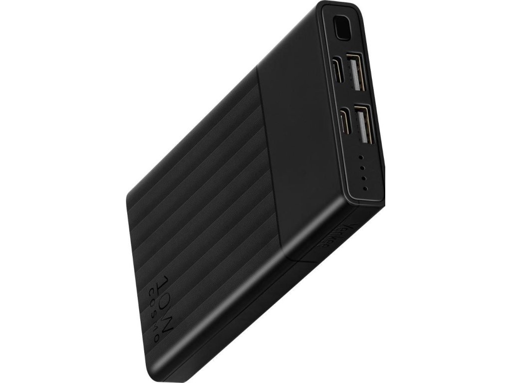 Kompaktní power banka s kapacitou 10 000mAh a duálním USB výstupem s maximálním nabíjecím proudem 2A vhodná pro nabíjení chytrých zařízení.