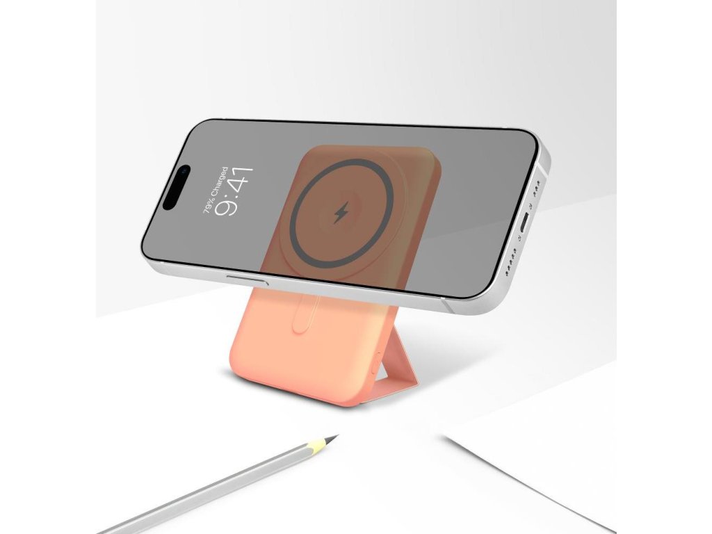 Kapesní power banka s bezdrátovým nabíjením a podporou MagSafe technologie, disponující kapacitou 5 000mAh. Bezdrátové nabíjení plně podporuje technologii MagSafe, umožňující nabíjení nejnovějších chytrých telefonů od Applu s výstupním výkonem až 15W. MagSafe kompatibilita zajišťuje nepřetřžité nabíjení při manipulaci s telefonem. Pomocí magnetů se power banka přichytí k telefonu a bezdrátové nabíjení bude maximálně efektivní. Pro spuštění bezdrátového nabíjení jednoduše položte kompatibilní smartphone na označené místo na těle power banky a bezdrátové nabíjení se spustí. Bezdrátové nabíjení je kompatibilní s telefony vybavenými bezdrátovou technologií standardu Qi. Tuto technologii mohou mít zařízení buď integrovaně, nebo je možné dokoupit kompatibilní příslušenství Power banka obsahuje pouze USB C port s podporou rychlonabíjení Power Delivery 20W. Port USB C lze využít jak pro nabíjení chytrého zařízení, tak i pro nabíjení samotné power banky. Funkce stabilního stojánku přináší pohodlí při sledování videí během dobíjení telefonu. Jeho inovativní design je zabudován do zadní strany power banky, což zajišťuje kompaktnost a snadnou přenositelnost.