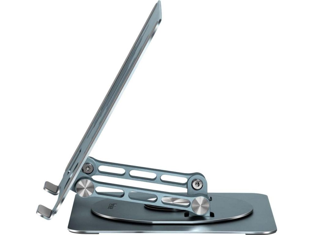 Univerzální polohovatelný a otočný o 360° stojan je navržen speciálně pro tablety nebo notebooky do velikosti až 17". Jeho pevná a odolná konstrukce z hliníkové slitiny zajišťuje stabilitu a dlouhou životnost. S elegantním designem se stojan stane stylovým doplňkem vašeho pracovního prostoru. Díky možnosti složení stojanu do vodorovné polohy je ideální pro cestování. Snadno ho můžete sbalit a vzít s sebou kamkoli. Jeho všestrannost znamená, že je vhodný pro použití doma, v kanceláři nebo na cestách, poskytující vám optimální pracovní prostředí bez ohledu na místo. Tento stojan je perfektním řešením pro práci, hraní her a sledování filmů. Díky možnosti polohování a otáčení o 360° můžete snadno nastavit optimální pozici obrazovky a získat pohodlný úhel pro vaše aktivity. Užijte si plynulý a pohodlný zážitek při práci nebo zábavě s tímto všestranným stojanem.