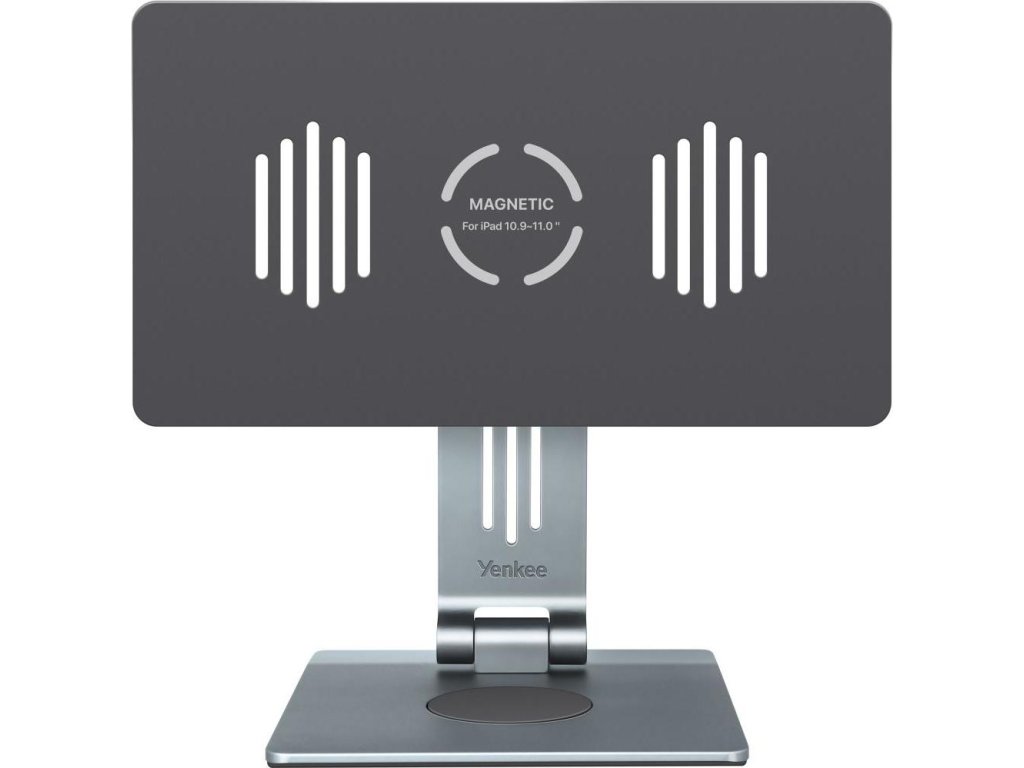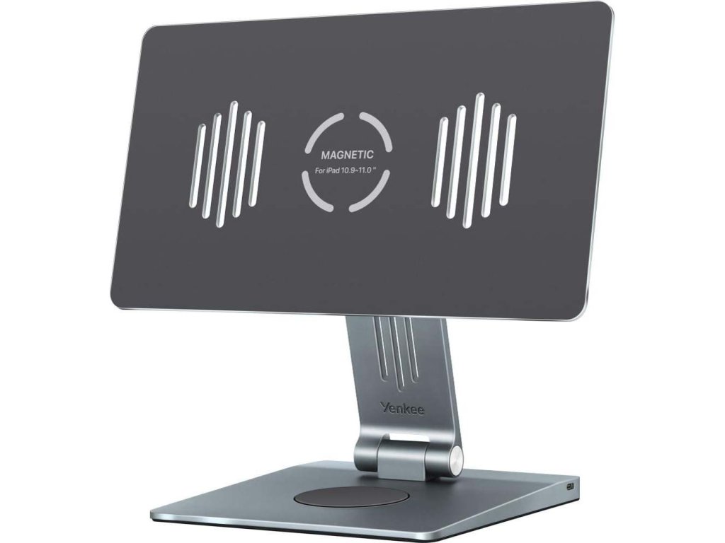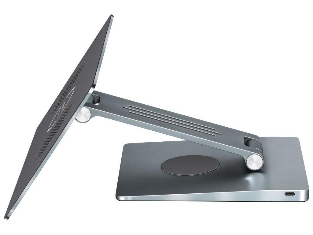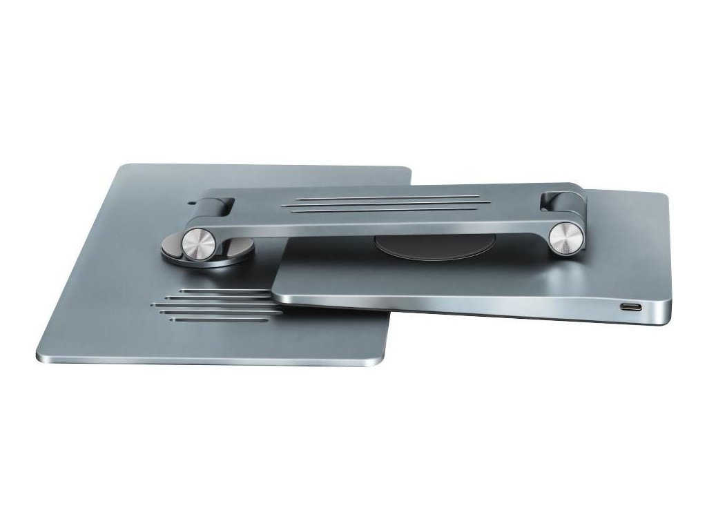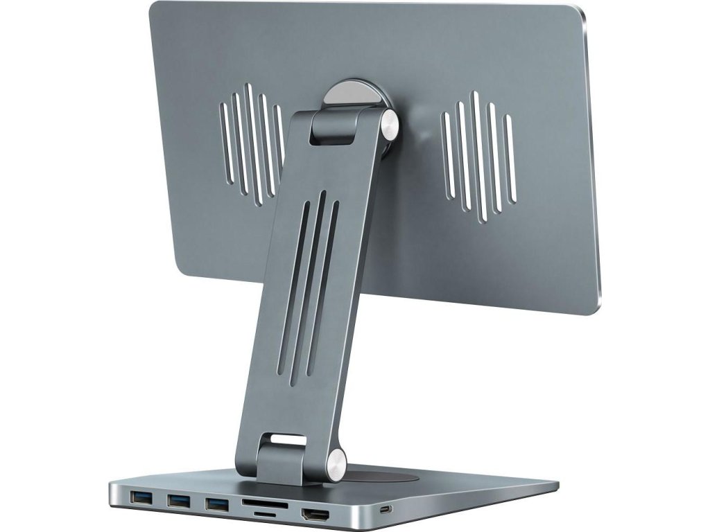 je osazen výkonnými výstupními porty typu USB C (PD 100W) nebo USB A 3.0. Můžete rozšířit pracovní plochu o další monitor pomocí HDMI 2.0 portu integrovaného do stojanu. Práci s daty a fotografiemi na paměťových kartách zvládnete díky slotů na SD a Micro SD karty. Neomezenou flexibilitu posytuje možnost rotace o 360 stupňů a polohování stojanu a držáku. K dispozici jsou tři USB 3.0 porty které dosahují maximální rychlosti přenosu dat až 5Gbps. Nechybí ani super výkonný USB C 3.1 (Gen.1) port disponující napájecím protokolem Power Delivery 3.0 který umožňuje napájet vaše zařízení o maximálním výstupním výkonu až 100W. Bezdrátové nabíjení dalších zařízení jako jsou mobilní telefony nebo bezdrátová sluchátka např. Airpods dosahuje maximálního výstupního výkonu až 15W. Plocha pro bezdrátové nabíjení je vyznačena silikonovou podložkou na spodní části stojanu. Podpora rozlišení FHD1080p 120Hz a UHD 3840 x 2160@30Hz nebo 4096x2160@60Hz na HDMI výstupu poskytuje plynulé a ostré obrazy na vašem televizoru, monitoru nebo projektoru přímo z vašeho iPadu! S vestavěnými sloty pro paměťové karty Micro SD a SD s rychlostí přenosu dat až 5Gbps, máte snadný přístup ke svým souborům a fotografiím. Můžete tak snadno zálohovat a sdílet svá data bez nutnosti dalších adaptérů nebo čteček karet. Při výrobě byly použity odolné prémiové materiály hliníku a silikonu. S hmotností 880g a rozměry 240x163x228.9mm je stojan ideální pro použití v kanceláři, doma nebo na cestách. Díky možnosti složení stojanu do vodornové polohy se perfektně hodí do batohu nebo cestovní tašky. Stojan je navržen tak, aby perfektně pasoval k vašemu zařízení a nabídl vám nejlepší možný zážítek při práci, hraní her nebo sledování videí. Je kompatibilní s iPad 2021/2022, iPad Air 4/5 a iPad Pro 11". Silný magnet, který bezpečně uchytí váš iPad ve správné pozici a s jeho pomocí můžete snadno nastavit optimální úhel pro sledování videí, práci s dokumenty nebo videohovory. Magnetické uchycení poskytuje pevné a stabilní spojení, takže se nemusíte obávat, že by váš iPad náhle sklouzl.