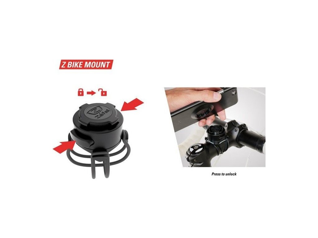 Připevněte váš držák Z console dry M jedním kliknutím na držák ZBike Mount (součást balení), který je uchycen na řidítkách nebo představci a vyjeďte!