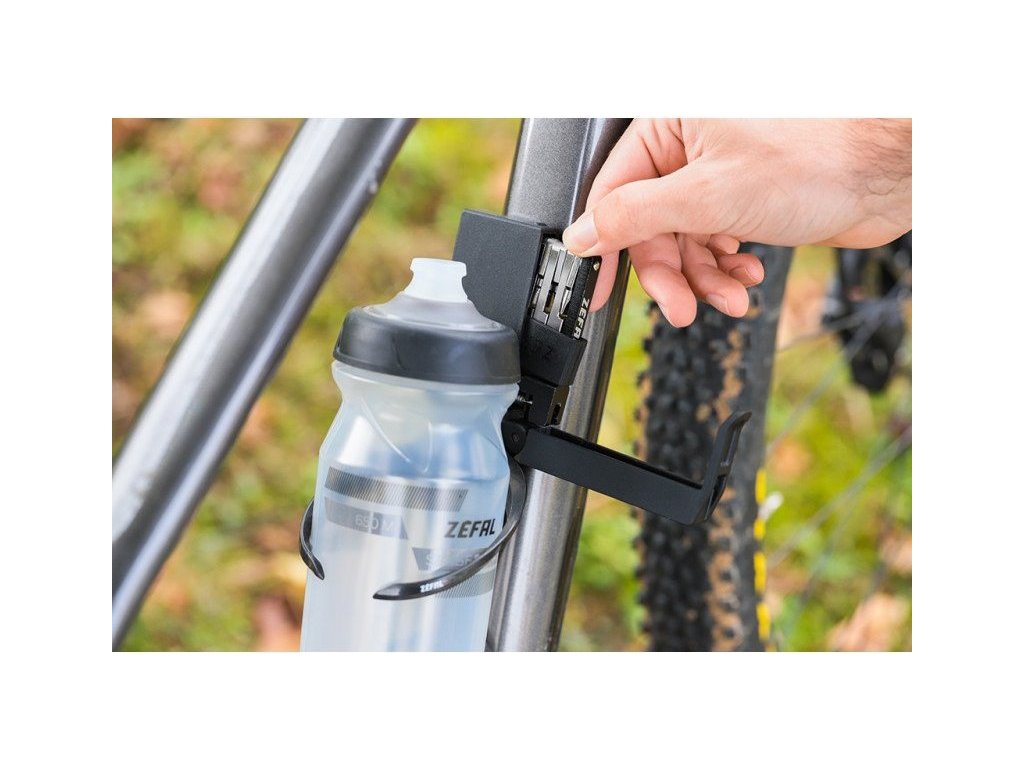 Držák se nasazuje na otvory se závitem a diskrétně se vejde pod jakýkoli košíku na láhev. Poskytuje dodatečnou úroveň ochrany nářadí před vodou.