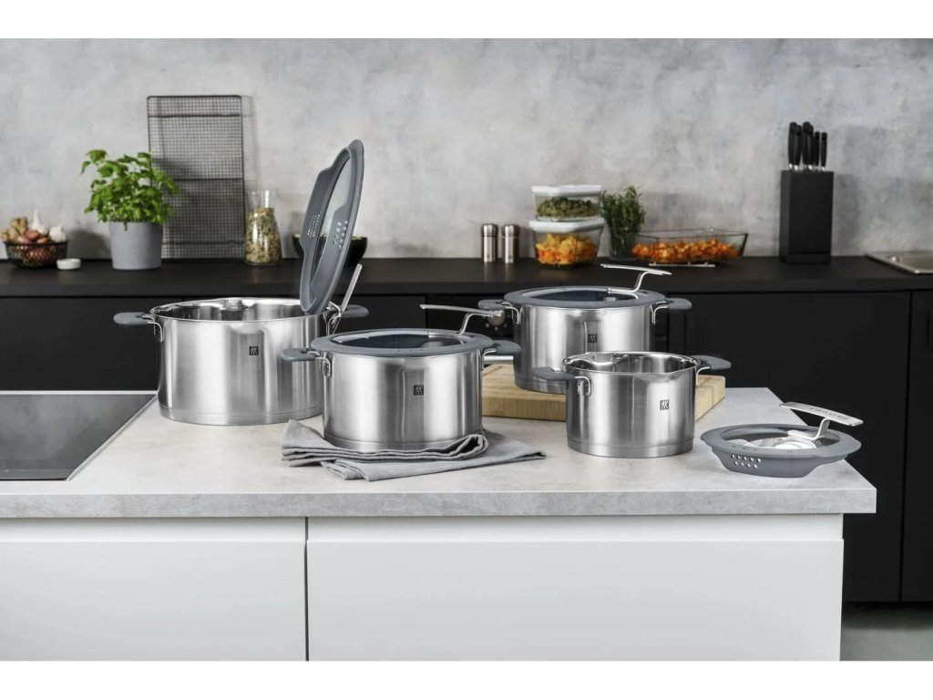 Série Simplify od ZWILLING kombinuje design a funkčnost.4dílná sada kastrolů zaujme nejen svým zvláštním vzhledem, protože každý hrnec v sadě zaujme také svými inovativními funkcemi. 4dílná sada nádobí obsahuje rendlík o průměru 16, 20 a 24 cm a kastrol o průměru 20 cm - plus odpovídající poklice.